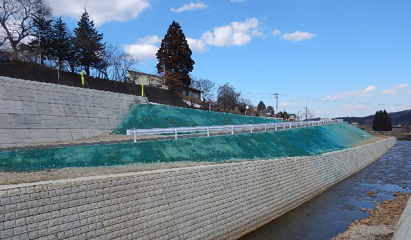 道路やダムの補修、斜面崩壊を防ぐ治山工事、さらには近年頻発している豪雨や台風による河川災害に対応する護岸工事や河川改修工事など、多岐にわたる土木工事を施工しております。